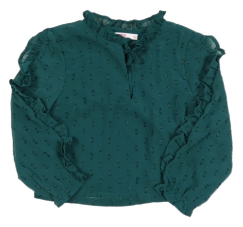 Tmavozelená šifónová blúzka so vzorom a volánikmi WE