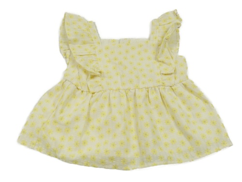 Svetložltá pruhovaná blúzka s kvetinami a volánikmi