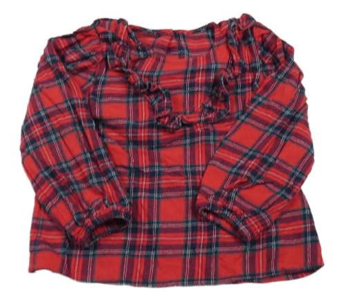 Červeno-tmavomodro/zeleno-biela kockovaná blúzka s volánikom George