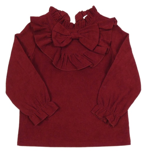 Vínová rebrovaná blúzka s volánikmi a mašlou Shein