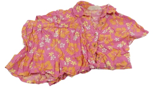 2set - Ružovo-žlto-oranžová kvetovaná crop halenka + kraťasy H&M
