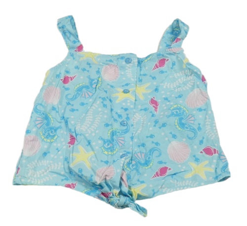 Svetlomodrá crop blúzka s mořskými koníky a mušlemi Kids