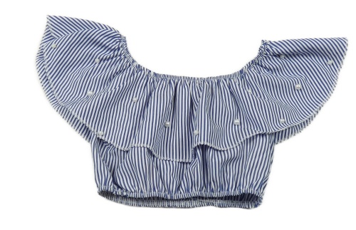 Modro-biela prúžkovaná crop blúzka s perličkami