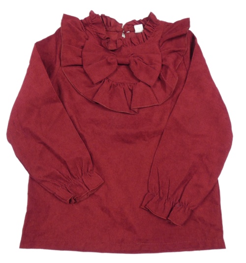 Červená rebrovaná blúzka s mašlou a volánikmi Shein