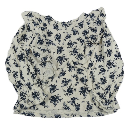 Bielo-tmavomodrá kvetovaná blúzka s volánikmi Zara