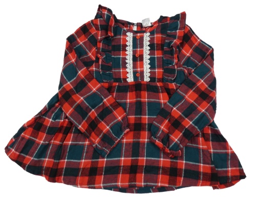 Červeno-tmavozeleno-biela kockovaná tunika s čipkou a volánikmi Little Kids