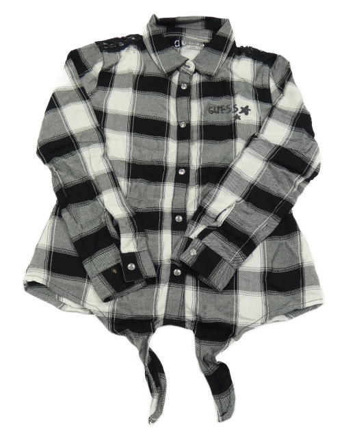 Čierno-biela kockovaná blúzka s nápisom Guess