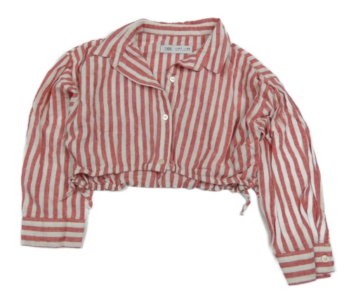 Červeno-biela pruhovaná ľanová crop blúzka Zara