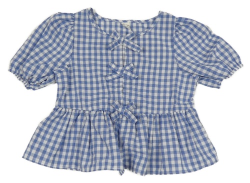 Modro-biela kockovaná tunika s mašľami SHEIN