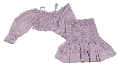2set - Lila crop blúzka so srdíčky + sukňa Shein