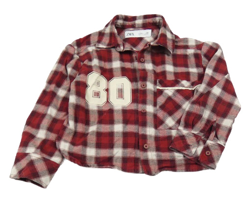 Červeno-bielo-čierna kockovaná crop blúzka s číslom Zara