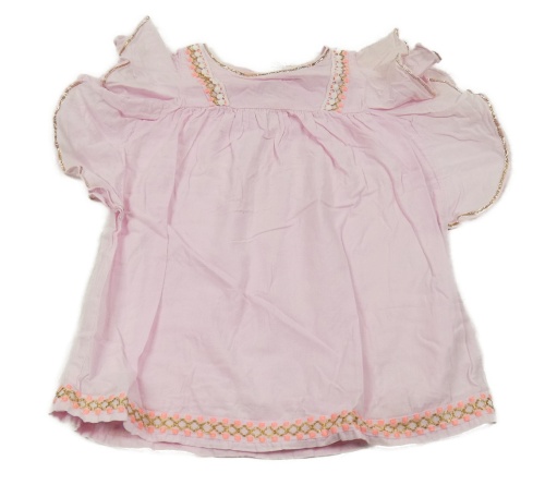 Svetloružová blúzka s volánikmi a farebnymi pruhmi