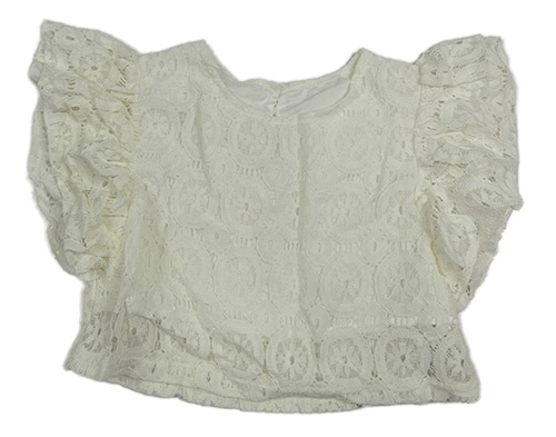Smotanová čipková crop blúzka s volánikmi
