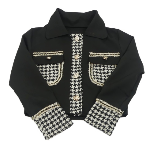 Čierna crop blúzka so vzorovanými prvky a gombíky
