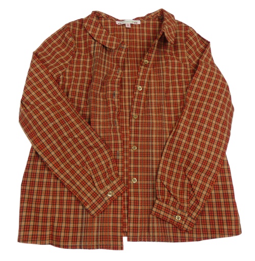 Červeno-hnedo-tmavohnedá kockovaná blúzka Bonpoint