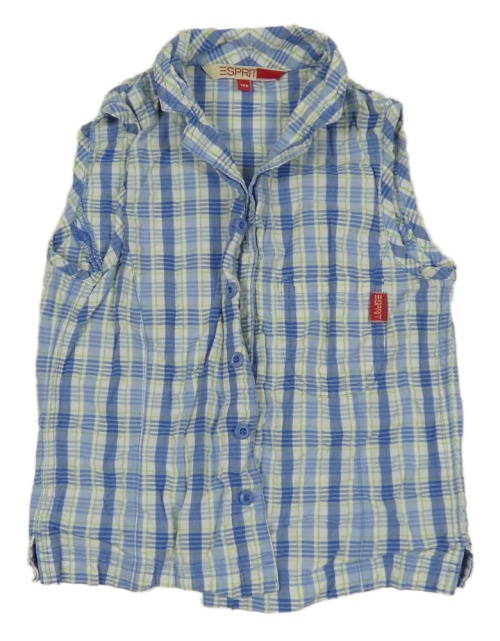 Modro-bielo-zelená kockovaná krepová letná crop blúzka ESPRIT