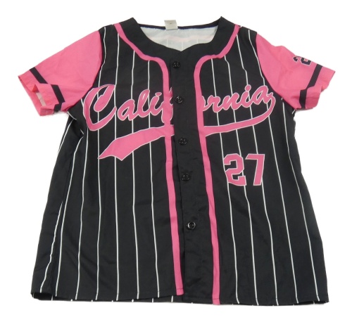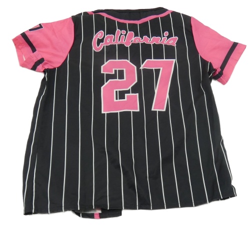 Čierno-bielo-ružová pruhovaná blúzka s nápisom Shein