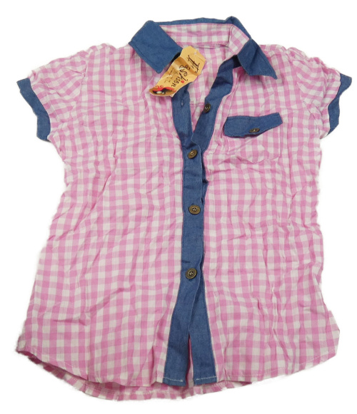 Nové - Ružovo-biela kockovaná blúzka s modrými lemy