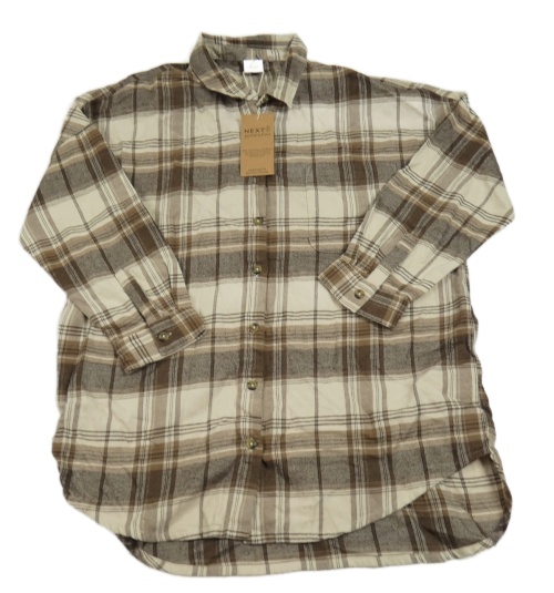 -Nové Hnedo-smotanová kockovaná košeľová tunika Next