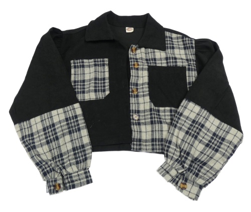 Čierno-sivo-modrá kockovaná crop blúzka