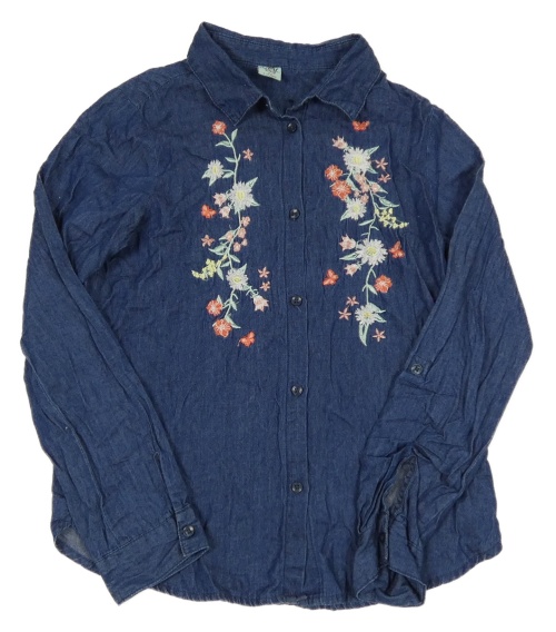 Tmavomodrá ľahká rifľová blúzka s kvietkami a motýlikmi Y.F.K.