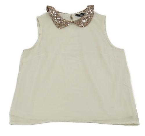 Smotanový šifónový blúzková ý top s límečkem z flitrů New Look