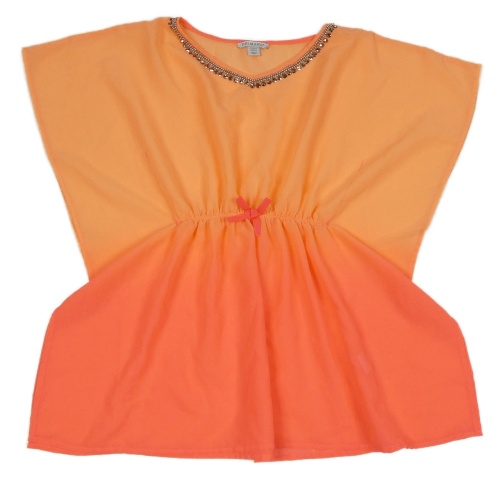 Neónově oranžovo-ružová ombré šifónová plážová tunika s kamienkami Primark