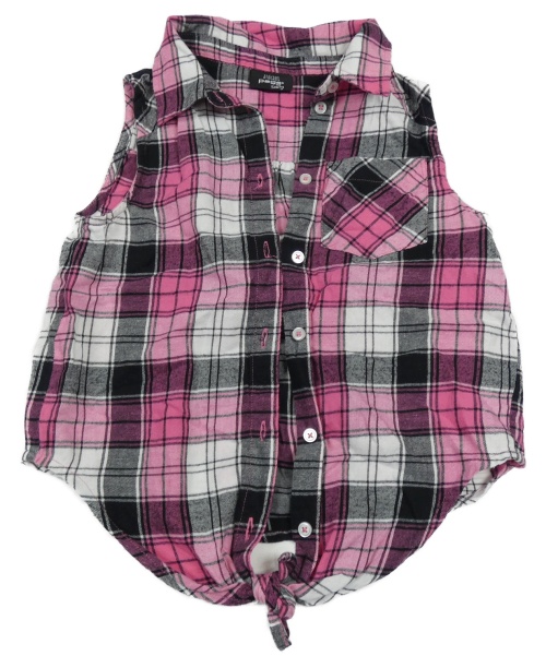 Ružovo-čierno-biela kockovaná crop blúzka Page One Young
