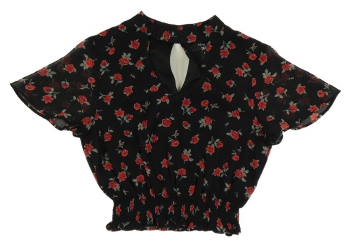 Čierno-červená kvietkovana šifónová crop blúzka New Look