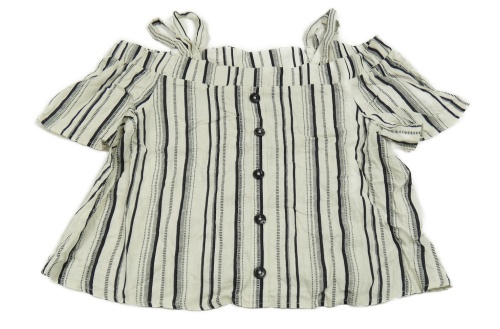 Nové - smetanovo-čierna pruhovaná ľanová crop blúzka s gombíkmi a volnými rameny PRIMARK