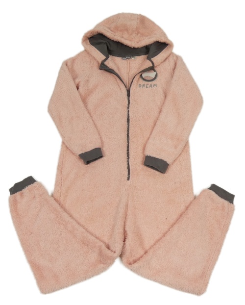 Svetloružová chlpatá kombinéza s labuťou a kapucňou Pepperts