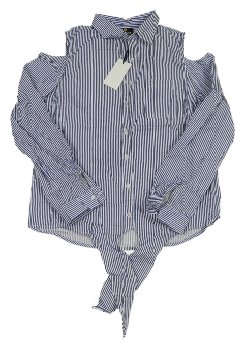 Nové - Tmavomodro-biela pruhovaná crop blúzka