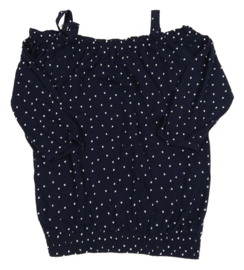 Tmavomodrá blúzka s volnými rameny a srdiečkami Yigga