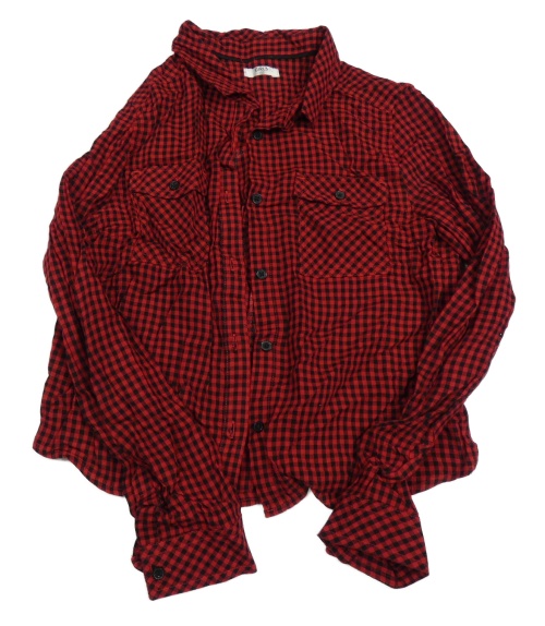 Červeno-čierna kockovaná crop blúzka s nápisom