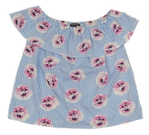 Modro-biela pruhovaná blúzka s kvetmi a volánem Primark