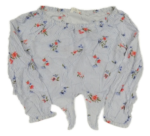 Bielo-svetlomodrá prúžkovaná crop blúzka s kvietkami a uzlom H&M