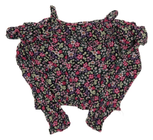 Čierna kvetovaná crop blúzka s volánem Page One Young