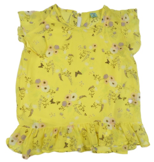 Žltá šifónová blúzka s kvietkami a motýlikmi a volánikmi Y.F.K.