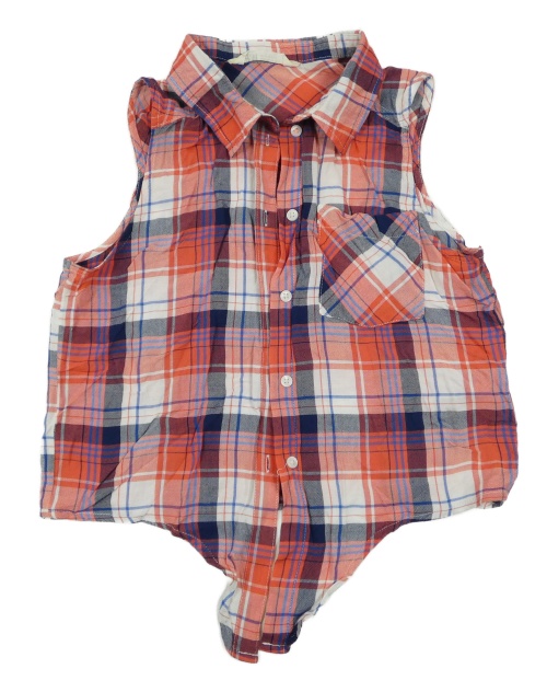 Červeno-bielo-safírovo-tmavomodrá kockovaná letná crop blúzka H&M