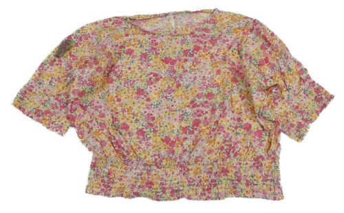 Bielo-ružovo-oranžová kvetovaná crop blúzka