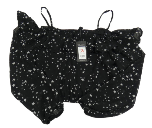 Nové - čierna šifónová crop blúzka s hviezdičkami a volánikom a volnými rameny New Look