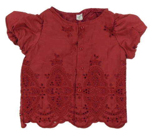 Vínová blúzka s výšivkami a perforovaným vzorom Shein