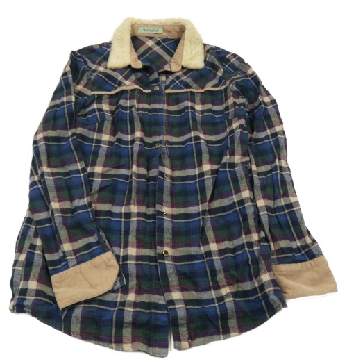 Tmavomodro-zelená kockovaná blúzka s huňatým golierom