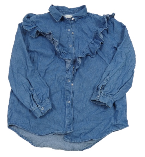 Modrá rifľová blúzka s volánikmi ZARA