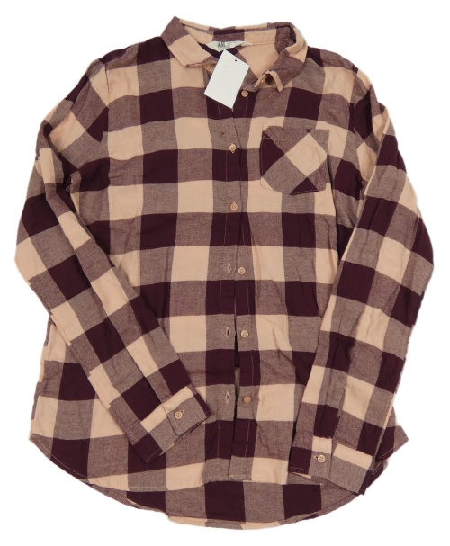 Nové - Vínovo-svetloružová kockovaná flanelová blúzka H&M