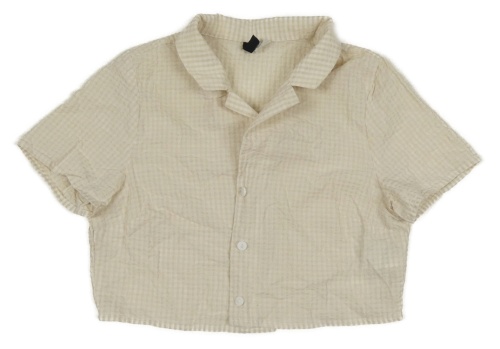 Bielo-béžová kockovaná crop blúzka DIVIDED
