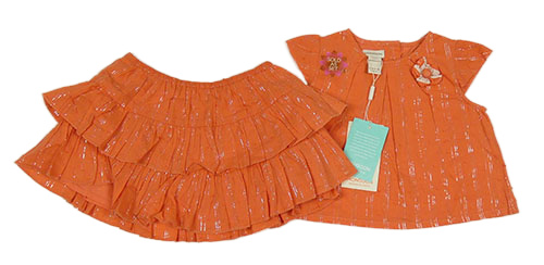 Nový - 2Set - Lososovo-strieborná pruhovaná bodkovaná á blúzka s květem + vrstvená sukňa Monsoon