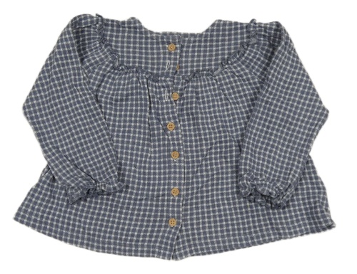 Tmavomodro-biela kockovaná oversize blúzka s volánikmi George