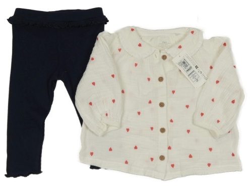 Nové - 2set - Smotanová mušelínová blúzka so srdíčky + tmavomodré rebrované legíny s volánem