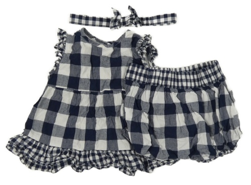 3set - Tmavomodro-biela kockovaná blúzková á tunika + kraťasy + čelenka F&F
